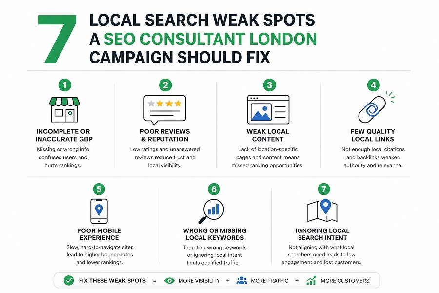 Local search campaigns often underperform because of ordinary weaknesses that accumulate quietly. A business may have a working website, a business profile and a few location pages, yet still lose enquiries to competitors that look clearer and more credible. A SEO consultant London campaign should identify the weak spots that affect both visibility and trust, then fix them in an order that reflects commercial impact.